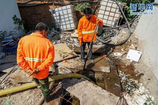 袁文布,淮安市一名通俗的环卫工人。每天清晨5点半,他城市呈现正在本人所担任的区域,清理疏通化粪池。(席航飞 摄)