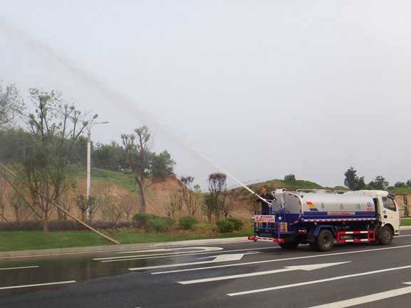 上装配置:罐体采用4MM武钢专用容积板制作,容积:9.3立方,大功率专用洒水泵,采用国际领先意大利技术,在国内生产各系列专用泵已有50年历史,产品质量成熟可靠,设计先进合理,使用方便快捷,比同类洒水泵压力大、吸程远、使用寿命长,克服其它洒水泵易被杂物缠住、压力小、吸水慢的缺点,引领国内外洒水泵行业标准,市场占有率93%,可泵进泵出。消防栓接口,前冲、后洒、侧喷,带后工作平台及绿化高炮,两根等长输水管,带洒水车音乐喇叭,其余标配。用户可选装消防大功率消防水泵、应急时可做消防洒水车使用;可选装气动阀控制驾驶室操作系统。