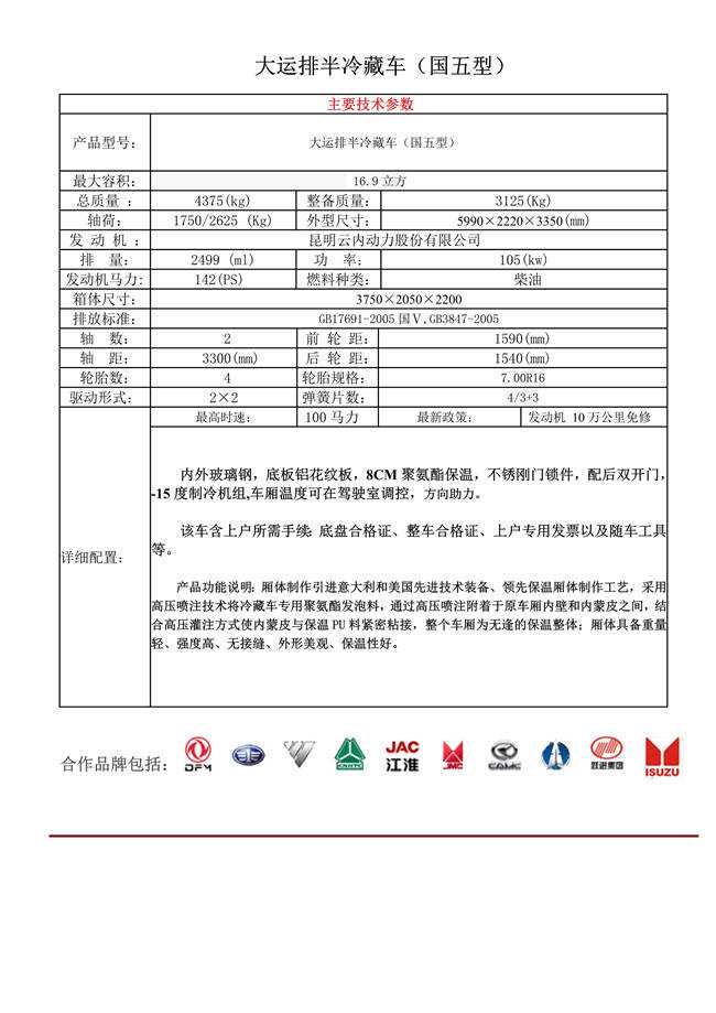 大运排半冷藏车(国五型)